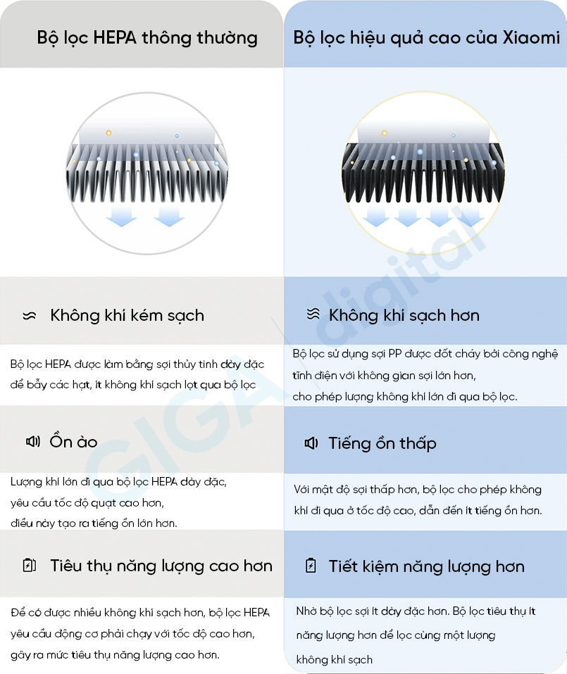 Sản phẩm có khả năng lọc bụi hiệu quả gấp 1.5 lần với thế hệ cũ nhờ bộ lọc True HEPA và PET giúp lọc không khí sạch hơn nhiều so với bộ lọc HEPA thông thường nhờ tích hợp công nghệ tĩnh điện và các sợi PP rất bảo đảm cho phép lọc sạch được lượng lớn không khí.