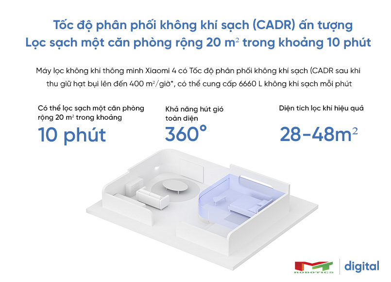 Với công suất 30W cho phép máy lọc Mi Air Purifier 4 BHR5096GL Xiaomi hoạt động hiệu quả trong phạm vi diện tích phòng dưới 48m². Độ ồn tối đa của máy khoảng 63 dB giống với cuộc trò chuyện thông thường nên không hề tạo cảm giác khó chịu khi máy đang hoạt động. Tuy nhiên, khi chọn chế độ hoạt động ngủ thì máy lọc không khí Xiaomi Air Purifier 4 chỉ hoạt động với độ ồn khoảng 32.1 dB như tiếng thì thầm nhỏ rất êm ả và không gây ảnh hưởng gì đến những gia đình có trẻ nhỏ và giấc ngủ của bạn.