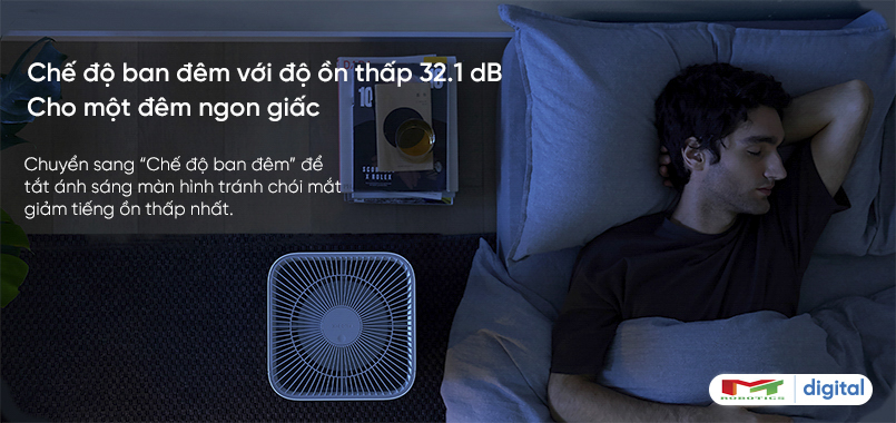 Chế độ hoạt động ban đêm: Độ ồn thấp chỉ khoảng 32.1 dB khi máy hoạt động cho bạn một môi trường ngủ thoải mái.