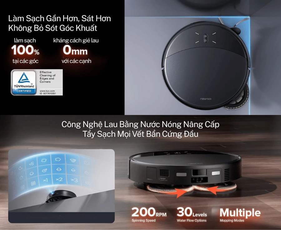 - Carpet Avoidance: Tự động né thảm khi lau, tránh làm ướt hoặc làm hỏng chất liệu thảm.