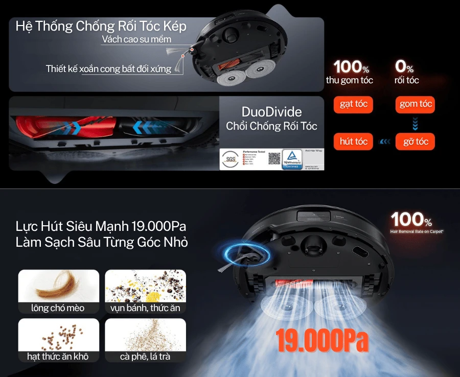 - Lực hút HyperForce 19000Pa hàng đầu ngành