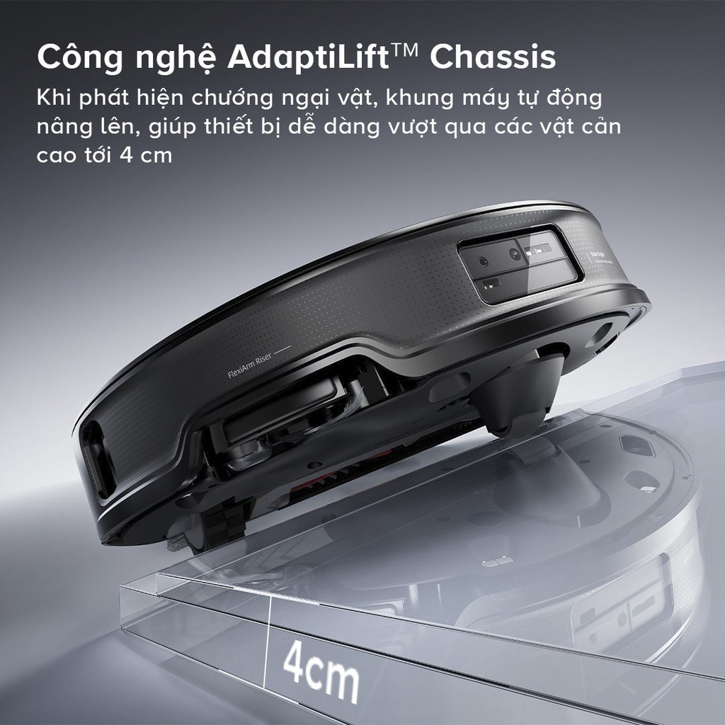 Công nghệ FlexiArm Riser – Chổi cạnh & giẻ lau có thể mở rộng tự động, giúp robot tiếp cận sát mép tường và góc lõm mà các robot thông thường dễ bỏ sót.